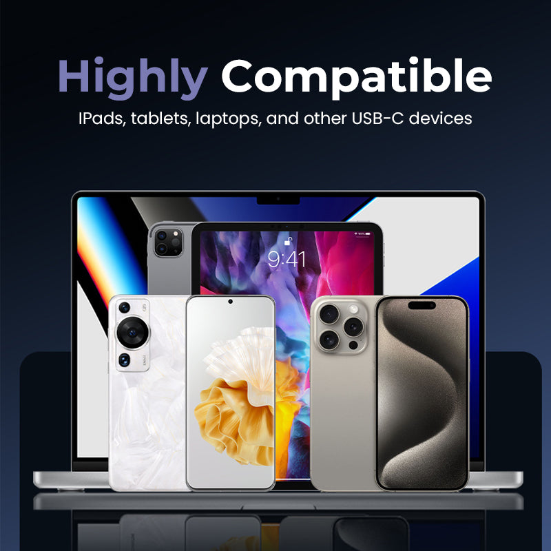 Fungerar med alla iPhone-modeller, Samsung Galaxy och alla enheter med typ-C-port. En kabel för alla dina prylar!